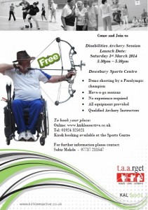 Archery sessions for people with a disability will launch on 1st March 2014 15:30 – 17:30 at Dewsbury Sports Centre. A paralympian will be at the launch to give some demonstrations and talk about archery.