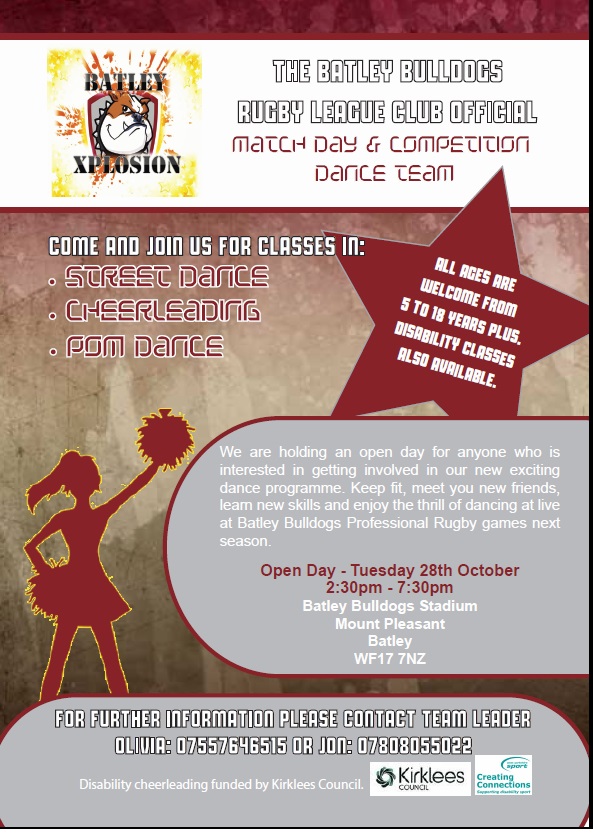 Batley Bulldogs Rugby Club will be launching its official cheerleading classes on Tuesday 28th October 2014.