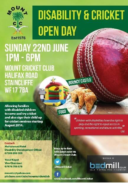 Mount Cricket Club in Staincliffe, Halifax are holding an open day on Sunday 22nd June 2014, between 1pm – 6pm.