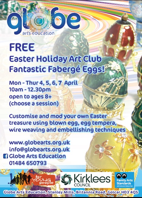 Globe arts education are running a FREE Easter Holiday Art Club for children aged 8+ on the following dates: