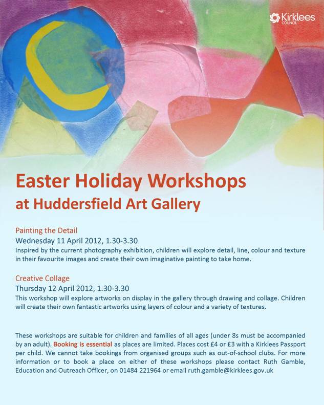 Easter Holiday Workshops at Huddersfield Art Gallery, 11&12 April