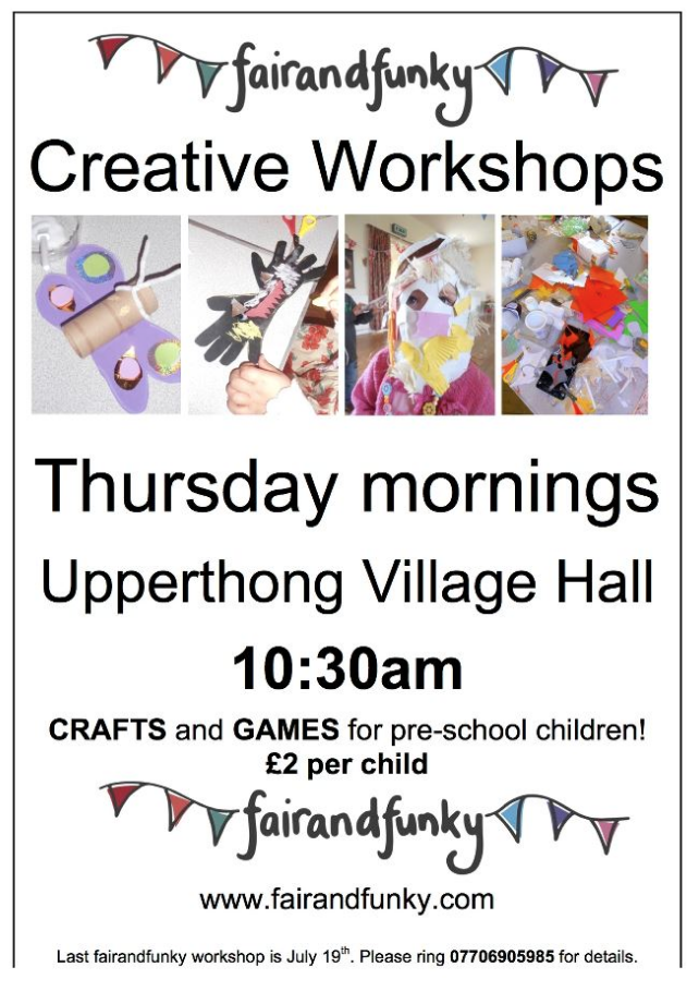 Fair and Funky Thursday morning workshops are continuing, check out their facebook page –  https://www.facebook.com/fairandfunky/events
