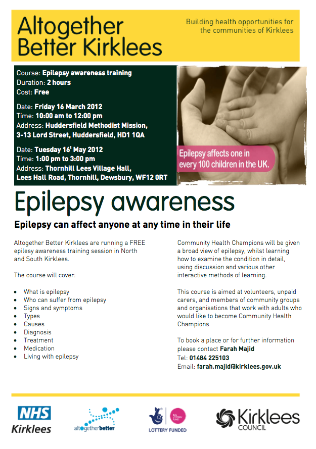 Below is a poster with information on some free Epilepsy Awareness training that Altogether Better Kirklees are delivering.