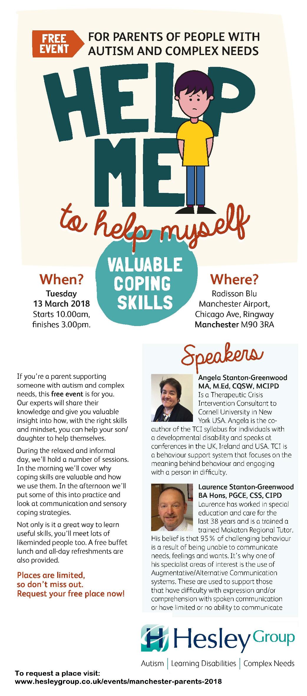 one-day FREE event (including breakfast rolls, refreshments and a buffet lunch) for parents on the topic ‘Help Me To Help Myself – valuable coping skills.